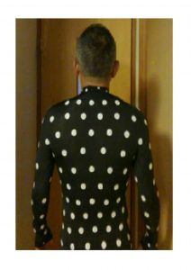 黒に白玉模様の服を着てアプリで写真を撮ると自分のサイズがわかり